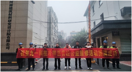 河南省瀝青混凝土行業(yè)協(xié)會到訪河南建材院,了解到紅旗路34號院門口路外瀝青混凝土路面局部塌陷,影響行人及車輛安全,隨即同河南九一環(huán)??萍脊煞萦邢薰緟f(xié)商進(jìn)行冷拌冷鋪瀝青砼公益維修活動。