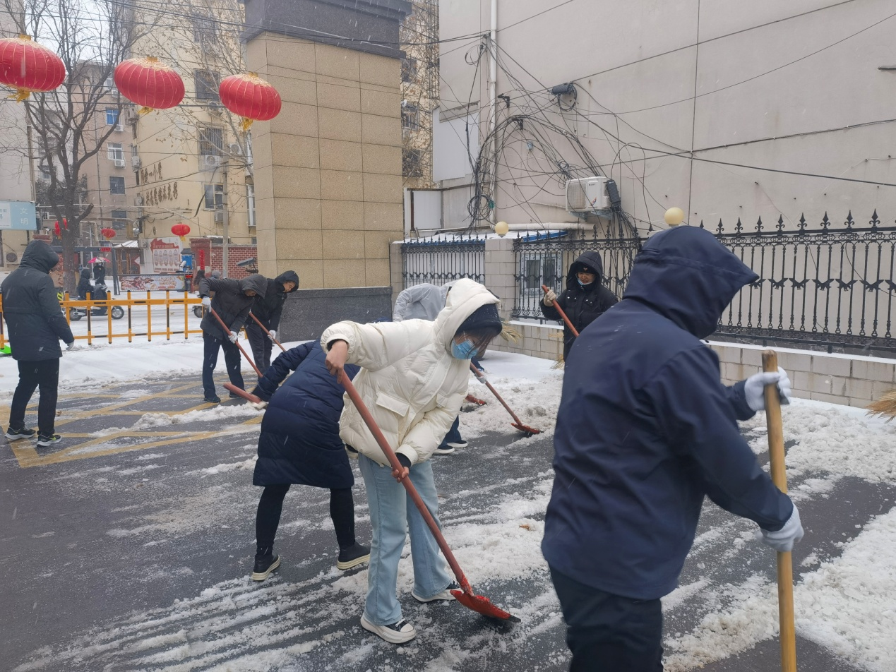 在公司黨委書(shū)記、董事長(zhǎng)尹青亞的帶領(lǐng)下,60余名黨員職工紛紛拿起鐵鍬、掃帚等勞動(dòng)工具,開(kāi)始對(duì)公司周邊道路及辦公區(qū)、家屬區(qū)主要道路上的積雪和堅(jiān)冰進(jìn)行清理。漫天大雪混雜著冰粒拍在職工的臉上、背上、手上,卻絲毫沒(méi)有撼動(dòng)大家勞動(dòng)的熱情和腳步,凜冽寒風(fēng)中三五人一組分梯次進(jìn)行掃雪除冰作業(yè),鏟的鏟、推的推、掃的掃,大家團(tuán)結(jié)協(xié)作、干勁十足,忙碌的身影在皚皚白雪中成了一道道靚麗的風(fēng)景線。